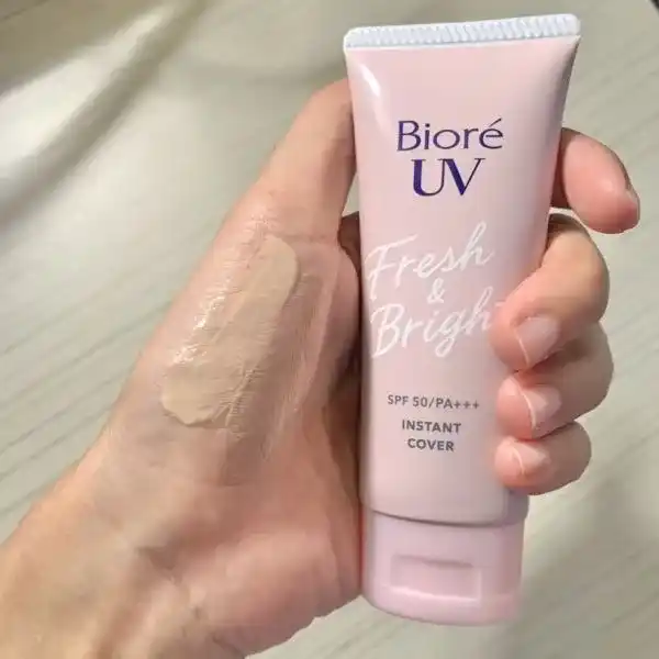 Nah, Fresh & Bright Biore Sunscreen Instant Cover adalah tinted sunscreen, yaitu sunscreen yang memiliki pigmen warna seperti foundation atau BB cream untuk hasil seperti pakai makeup.